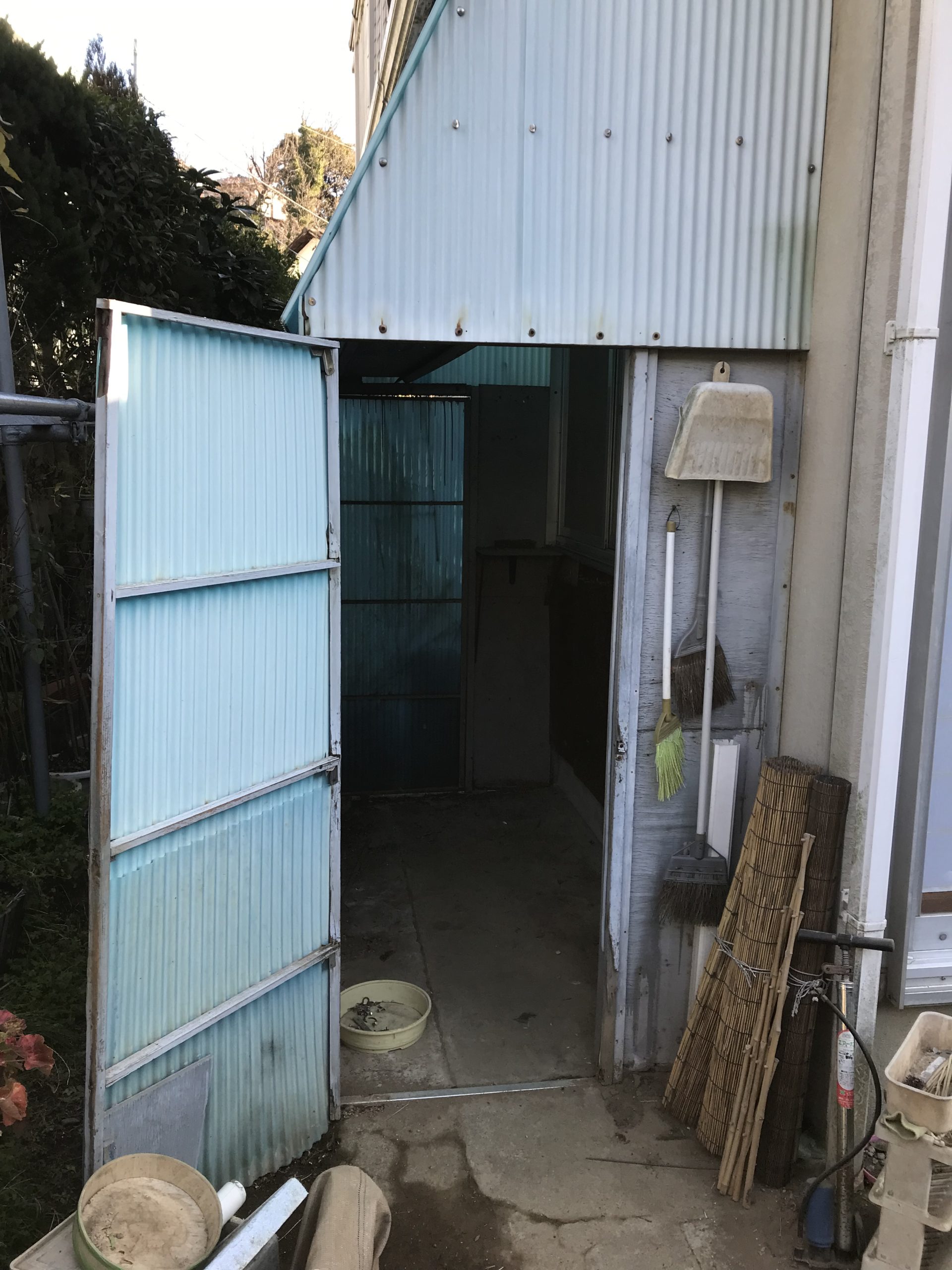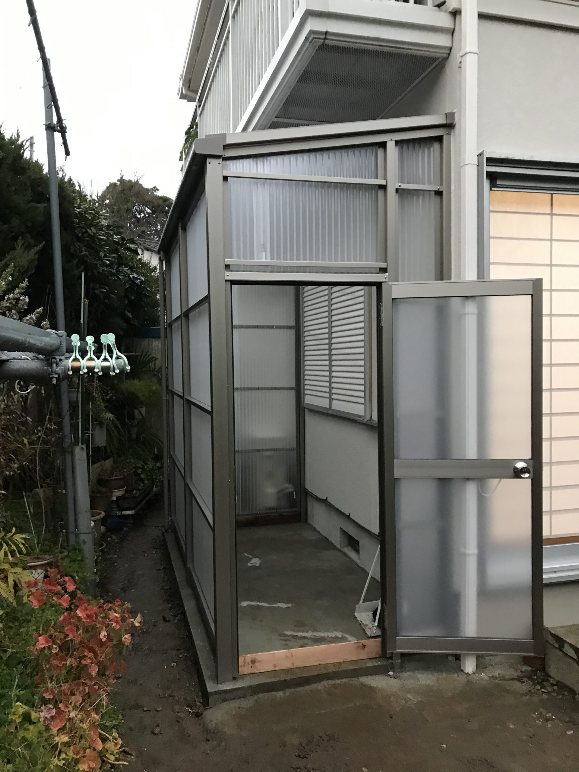 横須賀市のお客様 既存の物置を解体し、浸水しないよう土台を上げ、新規にストックヤード組み立て設置致しました。