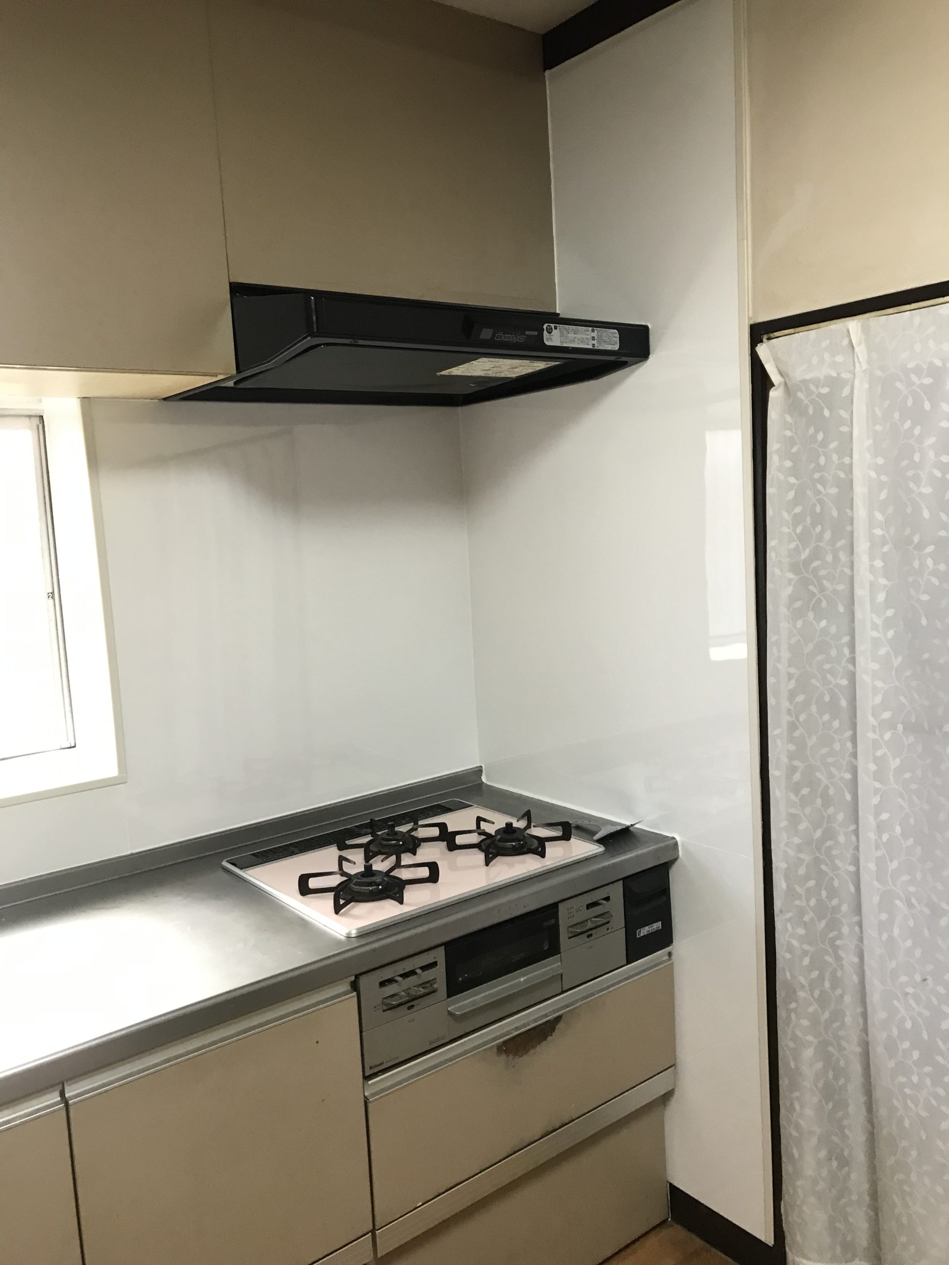 横須賀市のお客様 既存のキッチンパネルシートを剥がし、新たにシートではなくアイカの3ミリ厚のパネルを施工致しました。