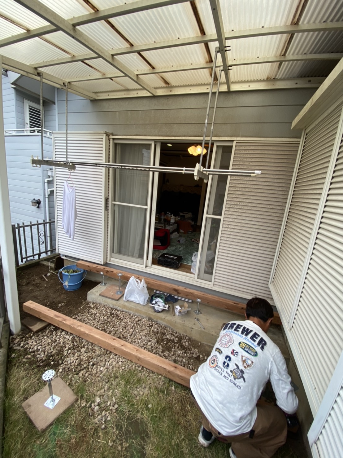 横須賀市のお客様 家の中からそのまま外へ出て洗濯物を干せる様にウッドデッキを組み立て施工致しました。