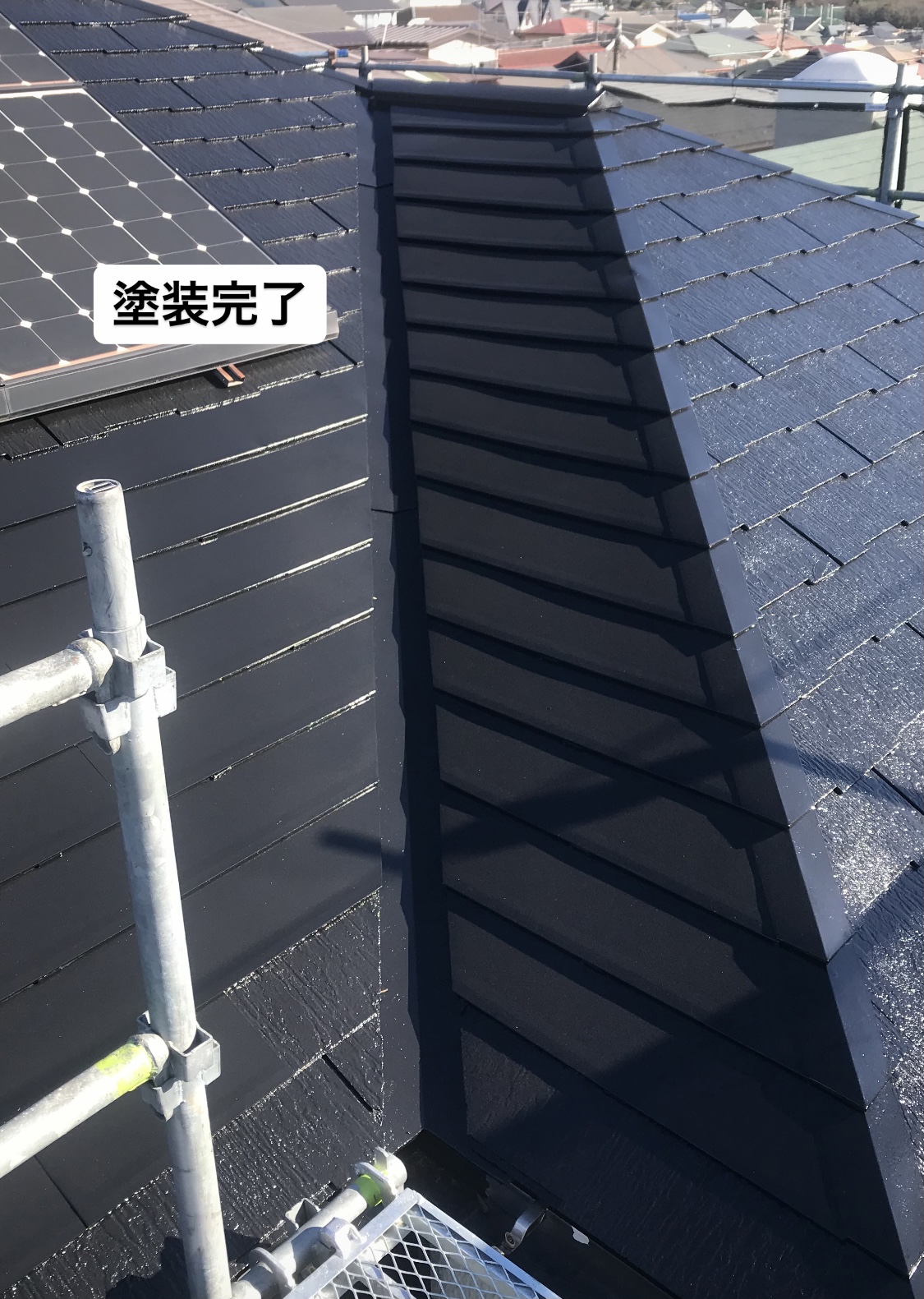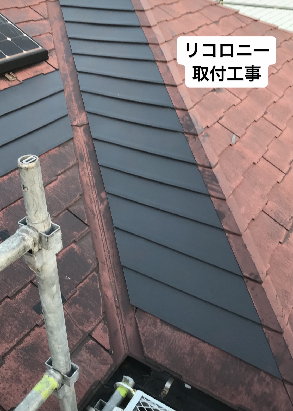 カバー工法をお薦め致しましたが、予算の都合で雨漏り箇所を修繕し、割れ欠けがひどい箇所は金属板のリコロニーでカバーし、塗装で色の統一感も出て見た目がとても良くなり、お客様に喜んでいただけました。